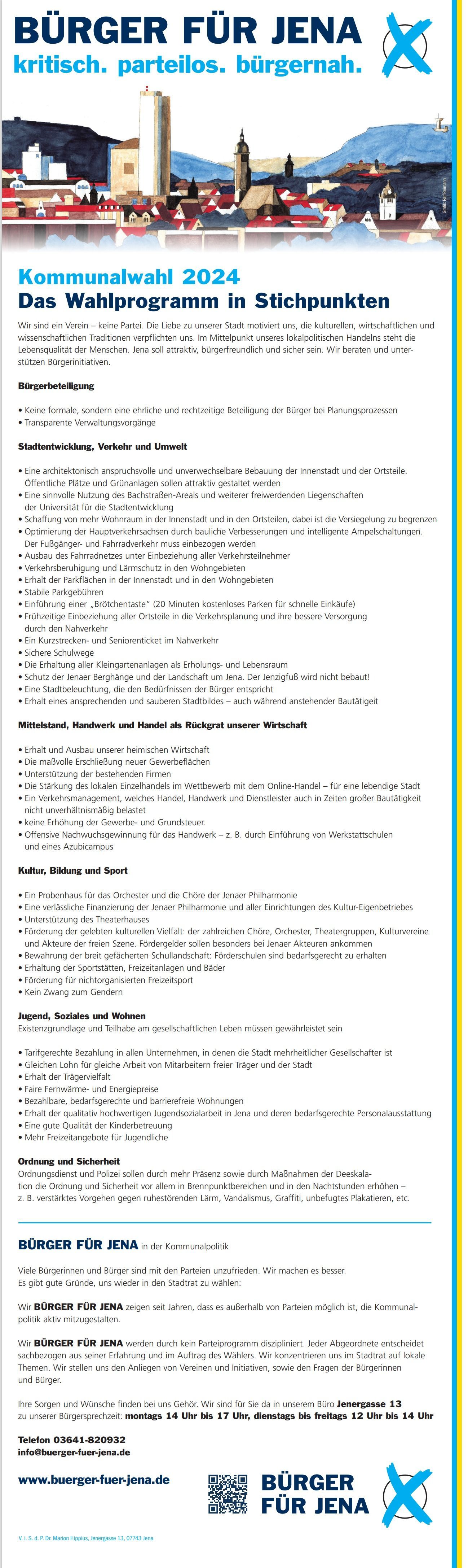 Unser Kommunalwahlprogramm ist IHR Auftrag an die Fraktion für die gesamte Legislatur. Es ist unsere Richtschnur für die Stadt Jena und Sie, die hier lebenden Menschen. Dafür haben Sie uns gewählt.